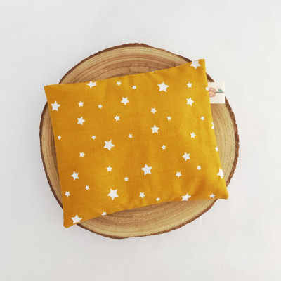 O seu interior contém sementes de trigo e flor de alfazema, e o tecido é 100% algodão. A capa é removível e pode ser lavada manualmente ou na máquina de lavar.