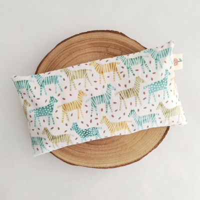 O seu interior contém sementes de trigo e flor de alfazema, e o tecido é 100% algodão. A capa é removível e pode ser lavada manualmente ou na máquina de lavar.
