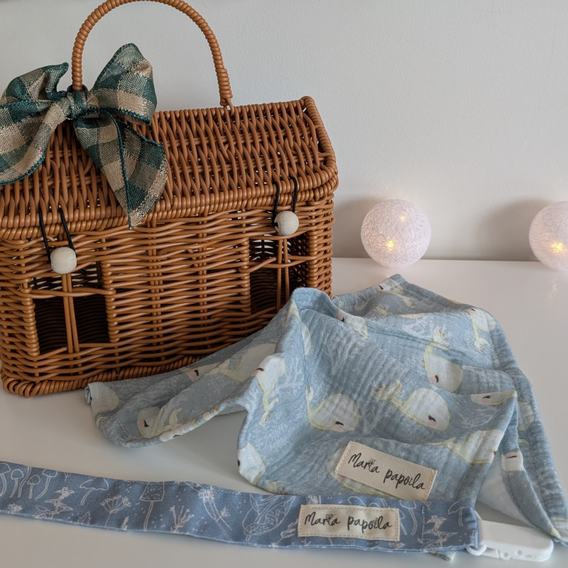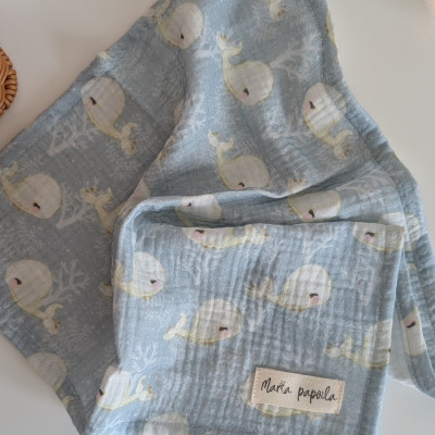 Para auxiliar o bebé na hora da refeição (leite ou papa) e para usar na pós refeição (para colocar o bebé a arrotar), esta fralda de musselina pequena é perfeita!