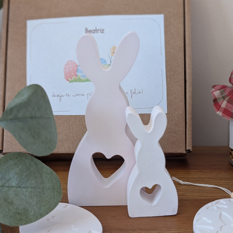 O conjunto de dois coelhinhos em gesso perfumado é o presente ideal para mimares quem mais gostas.
