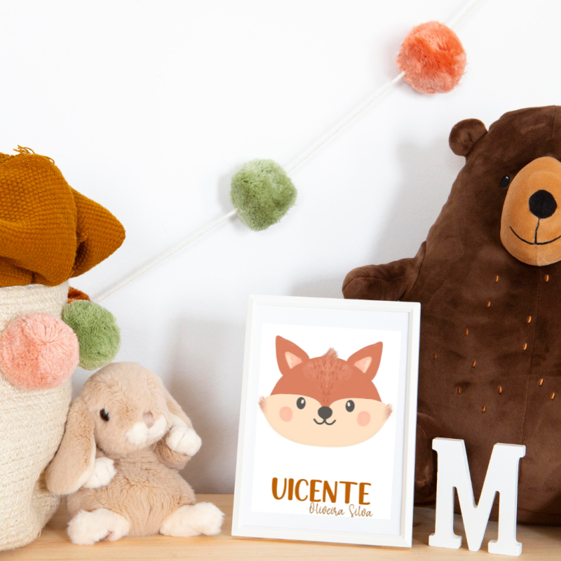 A ilustração FOX é personalizável! Indique o nome e apelidos do seu pequenote no campo para o efeito.