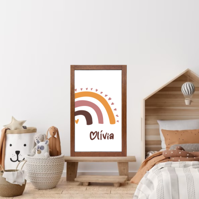 A ilustração Rainbow é personalizável! Indique o nome do seu pequenote no campo para o efeito.