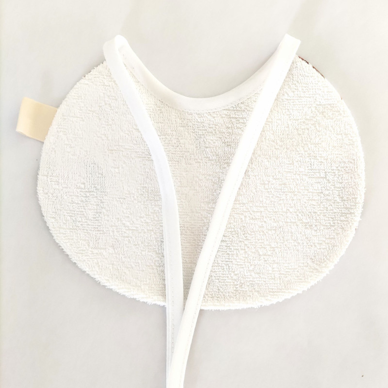 Babete de fita, ideal para o primeiro ano de vida. É muito útil na hora da refeição e nas fases de nascimento dos dentinhos, quando os bebés babam mais.